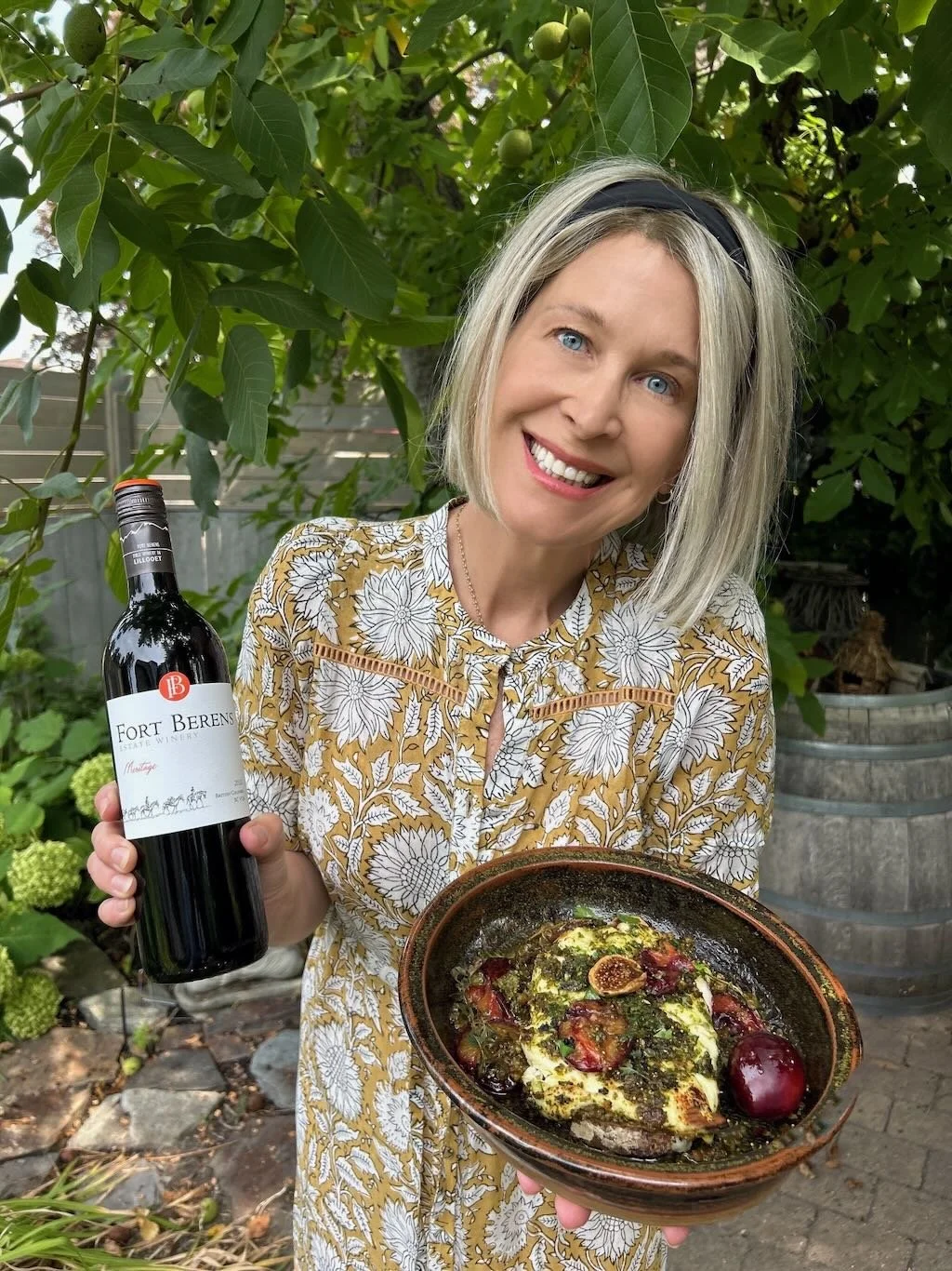 To make this dish unique and to enhance the tasting notes from this beautiful 2022 Fort Berens Meritage wine, I added the sweetness of fig, and saltiness of olives to my usual parsley fueled chimichurri and replaced the vinegar with the tartness from the plums to create a sublime taste experience. The roasted plums can be substituted with cherries or peaches when in season (or just more figs) and the oregano can be replaced or added to with thyme —this is a very versatile dish.